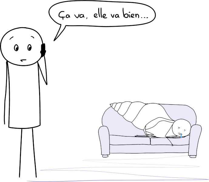 Alors, comme d’habitude, j’invite à rester bienveillant·e envers soi-même et à ne pas culpabiliser : on fait de notre mieux, avec les ressources dont on dispose à chaque instant. Parfois on pourra être très présent pour un proche, d’autres fois on n’y arrivera pas. Et, comme l’écrivais Marine la semaine dernière, une des première choses à faire pour aider un proche qui va mal, c’est déjà de prendre en charge ses propres émotions !