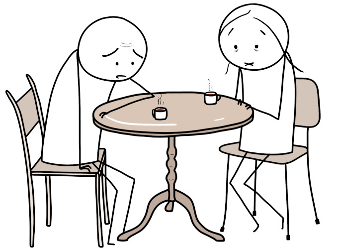 Je dis tout ça, mais récemment, j’ai pris un café avec un ami qui venait de perdre un ami. Et… je n’ai pas fait grand-chose pour le soutenir. En fait, on a papoté d’autre chose, je n’ai pas osé trop aborder le sujet.